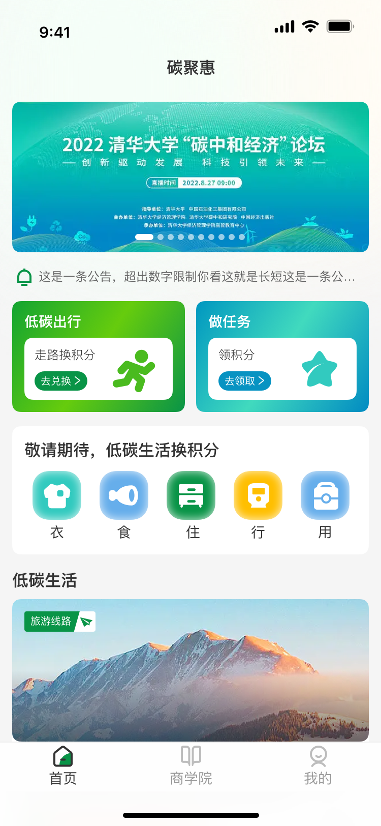 碳聚惠APP是一款助力景区打造智慧景区、环保低碳景区的旅游服务类APP,其围绕景区游览,旅客出行、住宿、线上商城为一体的旅游及其周边配套功能的服务型APP,用户可在线参与定制的旅游线路,查看景区特色等;并依托于用户的绿色出行等低碳0碳行为,累计线上碳积分,兑换商品、享受旅游周边服务等权益,积极推动个人的节能减排低碳行为,为环保事业贡献一份力量